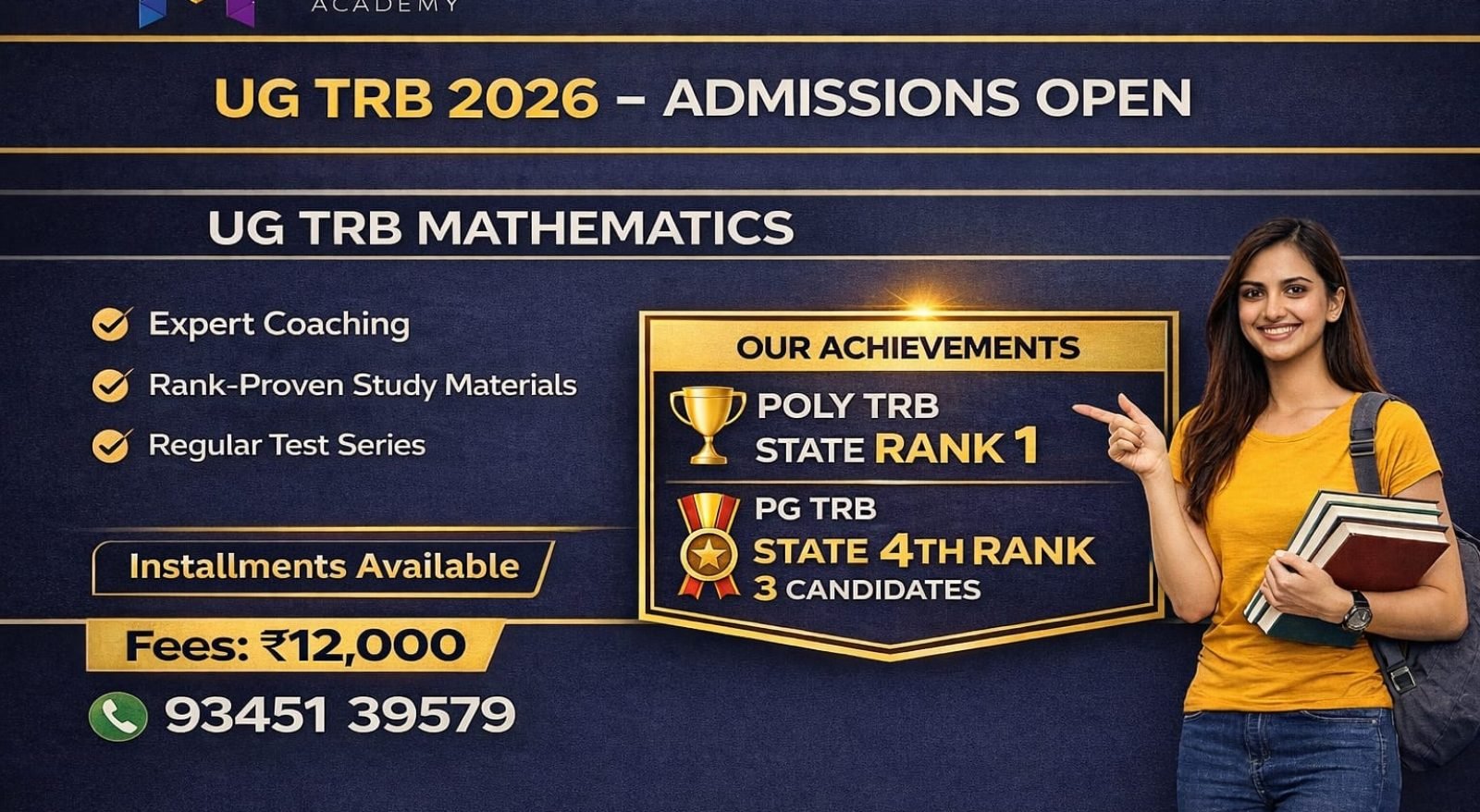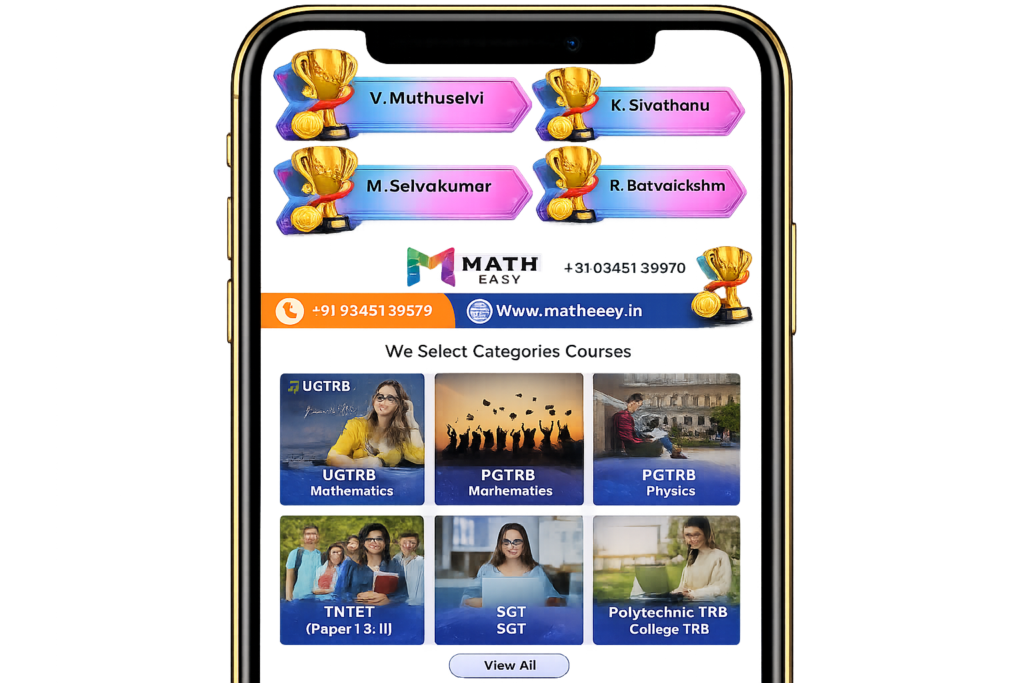 EXCELLENT Based on 25 reviews Posted on Jency .k Aided 6009Trustindex verifies that the original source of the review is Google. Posted on Kalaivani TamilselvanTrustindex verifies that the original source of the review is Google. I was a pgtrb student. Sir's teaching was very clear and he gave deapth explainations. His test questions are very standard. Whenever we have a doubt, he cleared the doubt. He never ignores to reply.Posted on Ananthi Natchiyar ManoharanTrustindex verifies that the original source of the review is Google. I was a student of his test batch pg trb. Questions were of high quality. Tests were posted along with the detailed explanation video..we were always free to ask doubts. Though its a test batch , rajasekar sir used to handle with utmost sincerity resolving doubts whenever needed. Along with maths, equal importance were given to psychology , GK,and also tamil eligibility. Notes were provided for tamil and GK which was very much helpful. He is very hard working. I appreciate his dedication and i wish him all the very best. I cannot thank him enough. After exam also, he was always there helping with CV process . May god bless him in abundance.i am glad that i am associated with math easy academy.Posted on deepa deepaTrustindex verifies that the original source of the review is Google. Your teaching methods are clear and structured and as well as very usefulPosted on VanithaTrustindex verifies that the original source of the review is Google. On seeing your vidioes on YouTube only, I choose my pgtrb course in your centre. Raja sir you are the the the best mentor.Many times I wonder your indepth explanation and teaching. If we fail to get job, it's 200 percent our mistake only. You are such a dedicated and inspiring personality!!!Posted on MANYA MovinTrustindex verifies that the original source of the review is Google. It's the place where u can get government job along with subject knowledge, it is the 1st time that I'm seeing like this excellent coaching centre in south IndiaPosted on HEMA FTrustindex verifies that the original source of the review is Google. Math easy academy is best academy for ug and pg course. Raja sir dedicate to take class and clarify to all our doubts. Thank you sir.Posted on Dhivya MathankumarTrustindex verifies that the original source of the review is Google. I am grateful to have the opportunity to learn from Math easy academy, Especially the way of teaching from Raja sir is excellent and one of the best I have ever experienced and Raja sir is a true inspiration for us. Thanks for revive all my hopesPosted on Jayanthi JacksonTrustindex verifies that the original source of the review is Google. This "Math Easy Academy" really made maths as easy one as along with understanding. Easily accessible, available at any time, Home makers as like me study with their convenient time. Tests are really really worthable, push me to study more sincerely. Raja sir you are a super hero for us. You inspire me more than your imagination. Learning many valuable things from you like humility, consistency, punctuality, perseverance etc. Thank you sir. Thank you whole heartedly for the wonderful journey. Hope, got a job through this guidance.Posted on kani mozhiTrustindex verifies that the original source of the review is Google. Math easy academy is the best academy for Trb coaching..